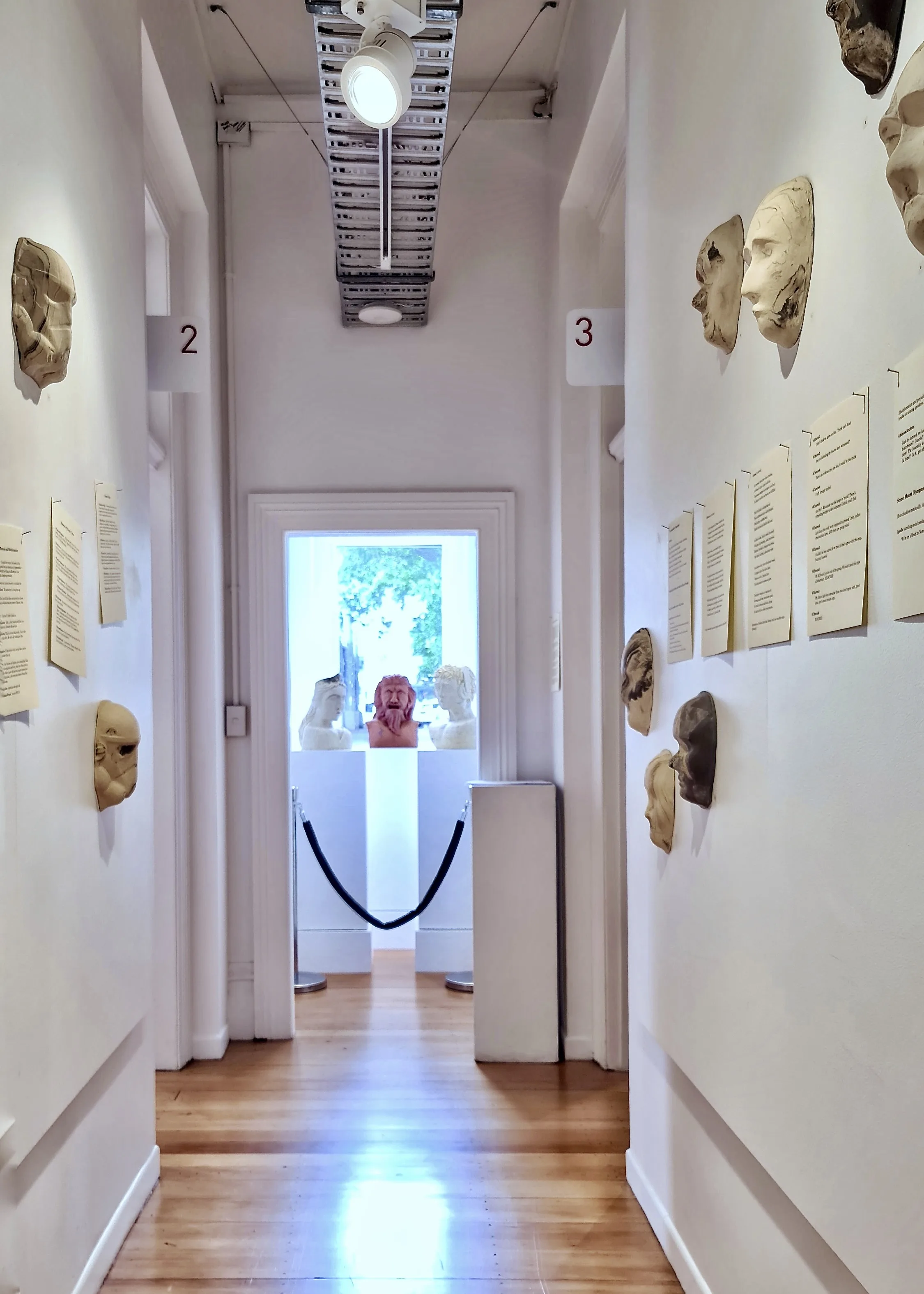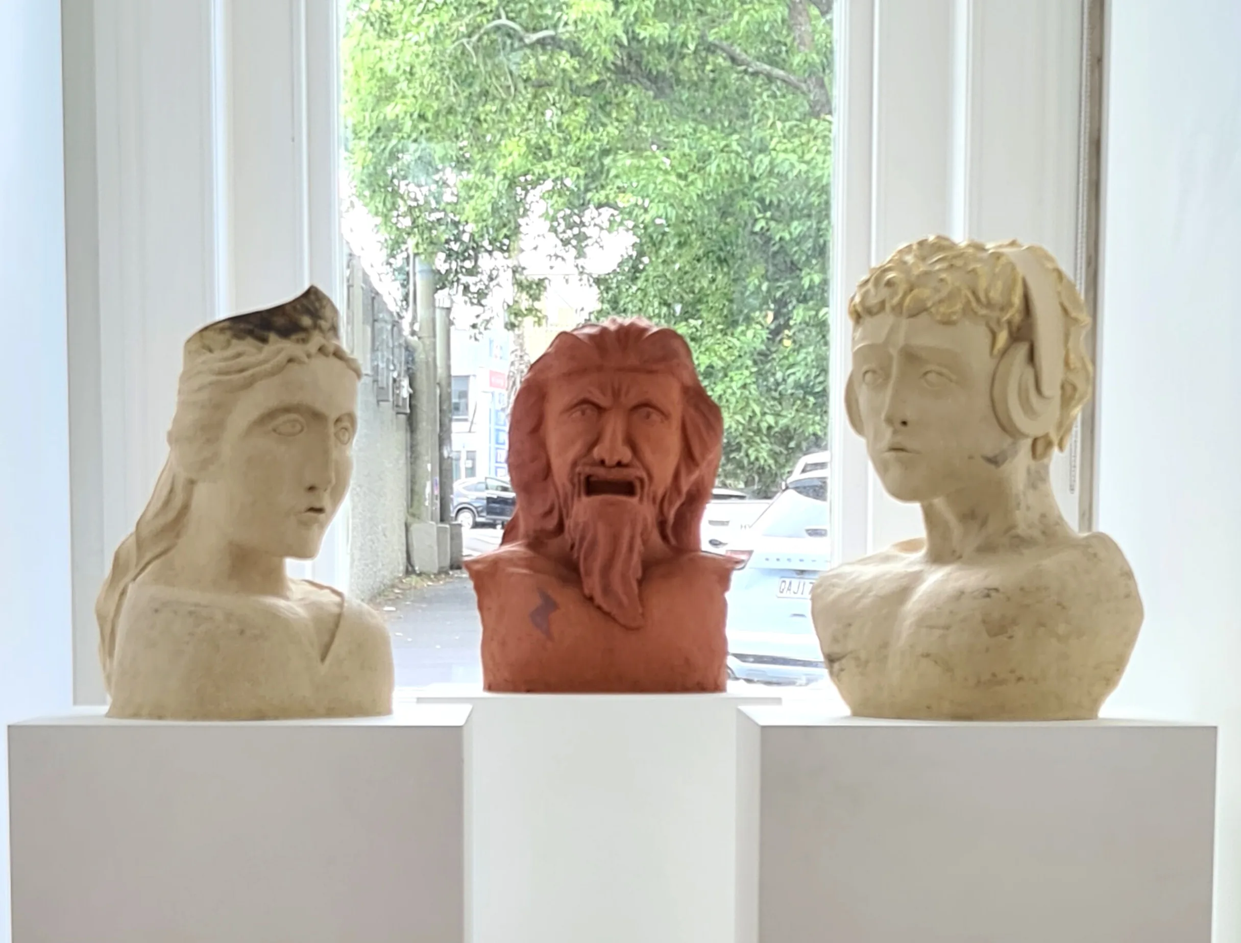 Studio One Toi Tū : Ceramic busts, face masks and text based upon a Greek play and using contemporary social media discussions