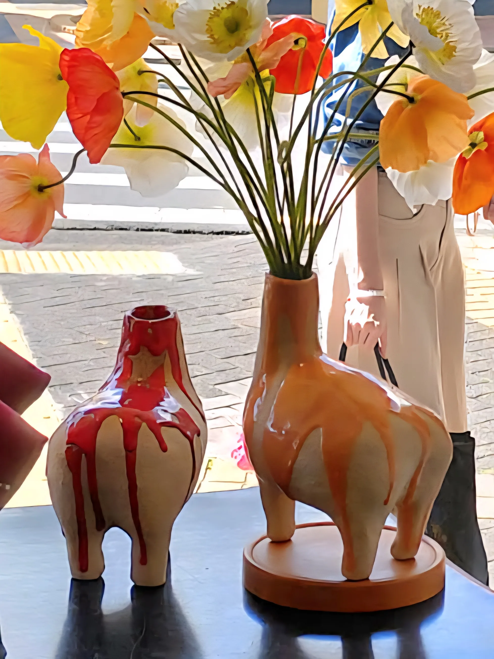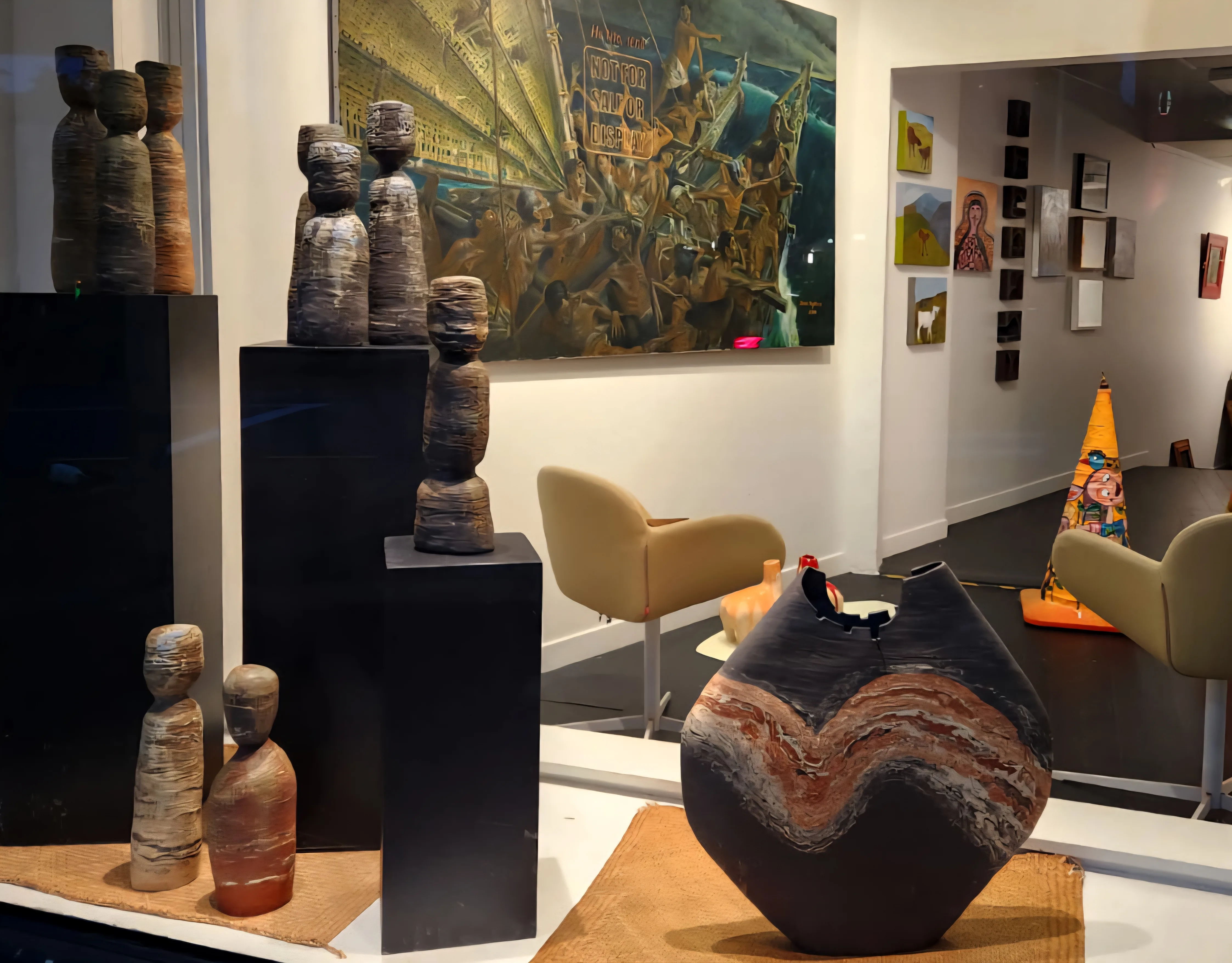 satellite2 Gallery, Devonport: Various marbled vessels, headless llamas, and sculpture for Pride Month