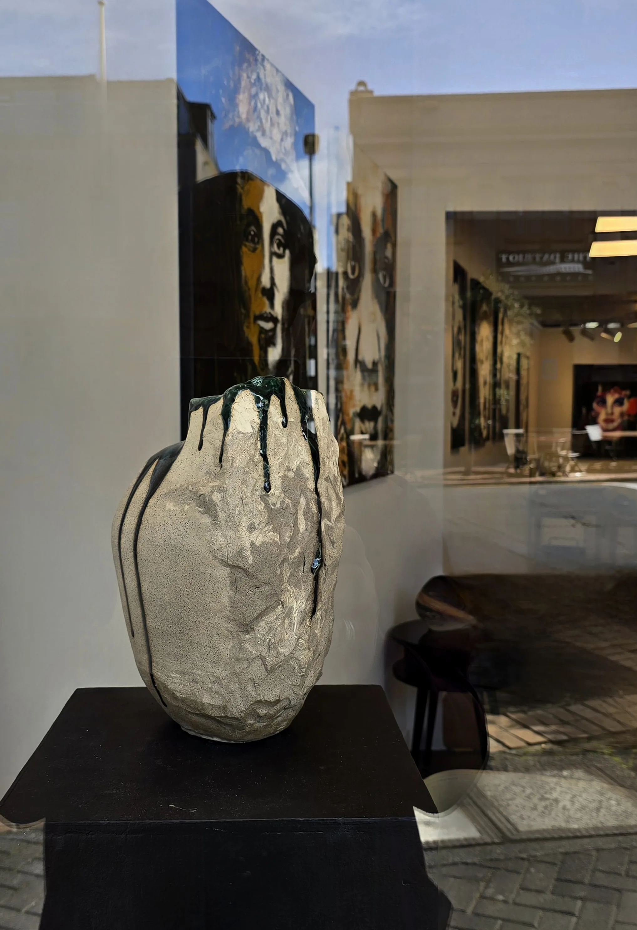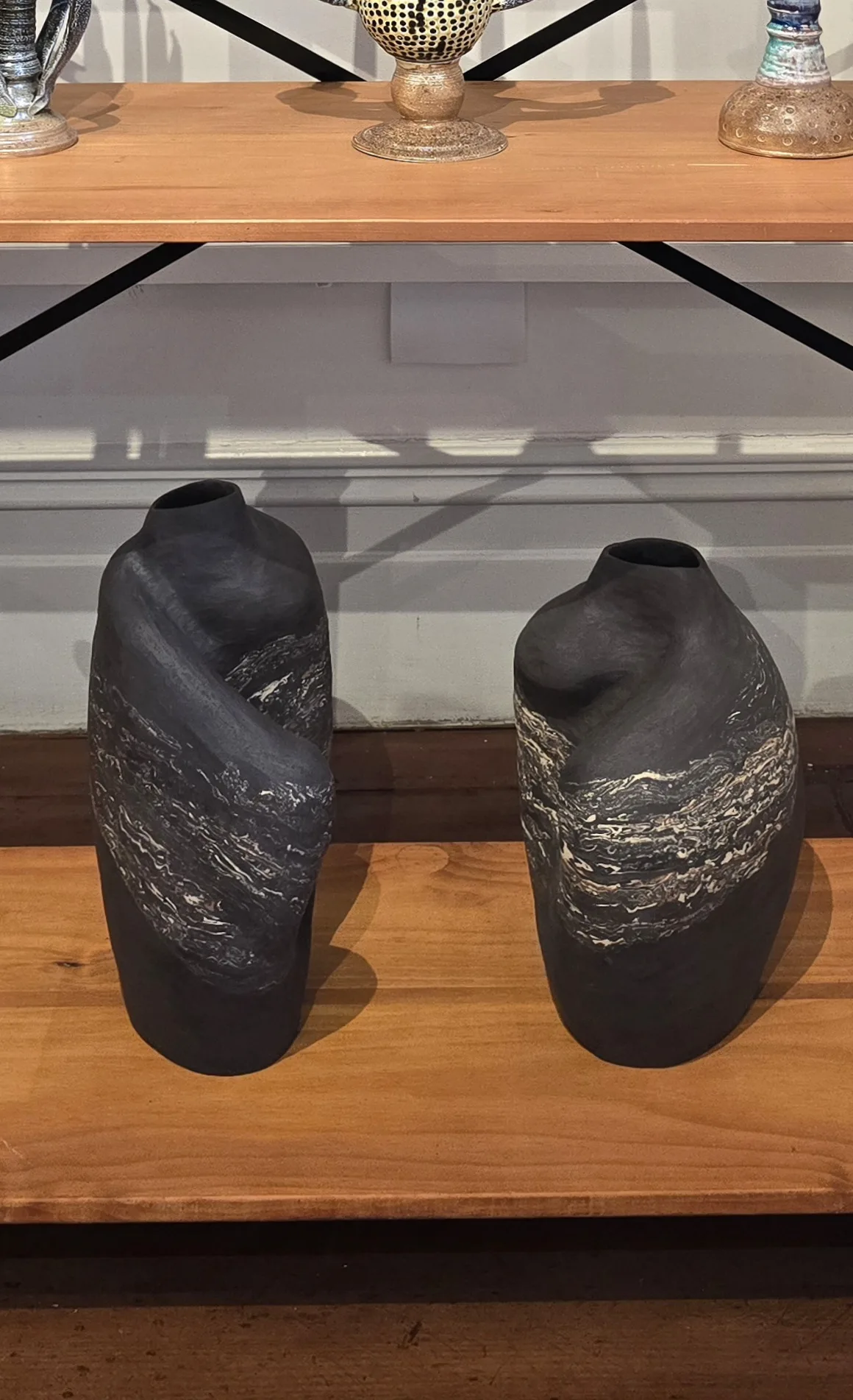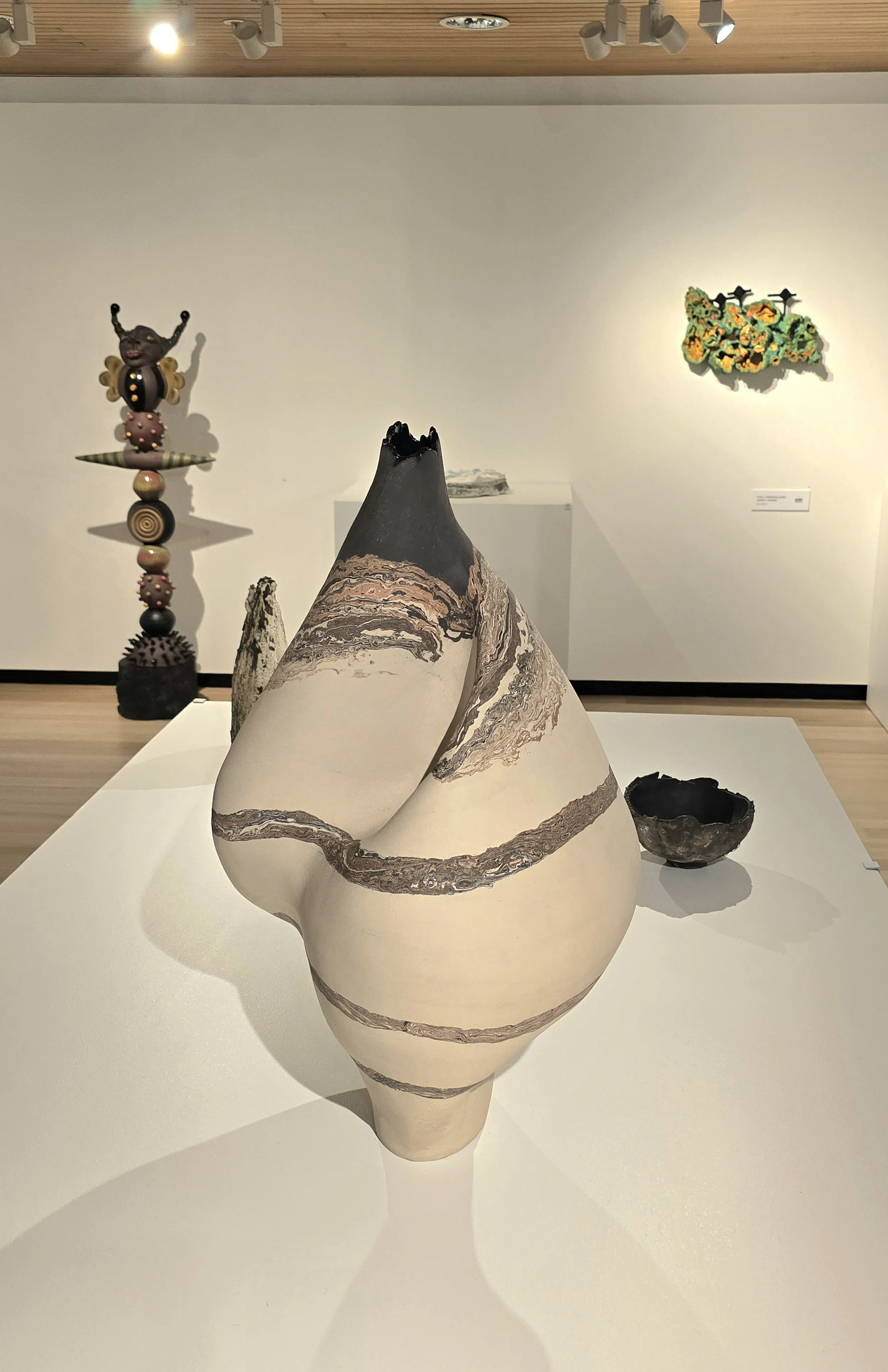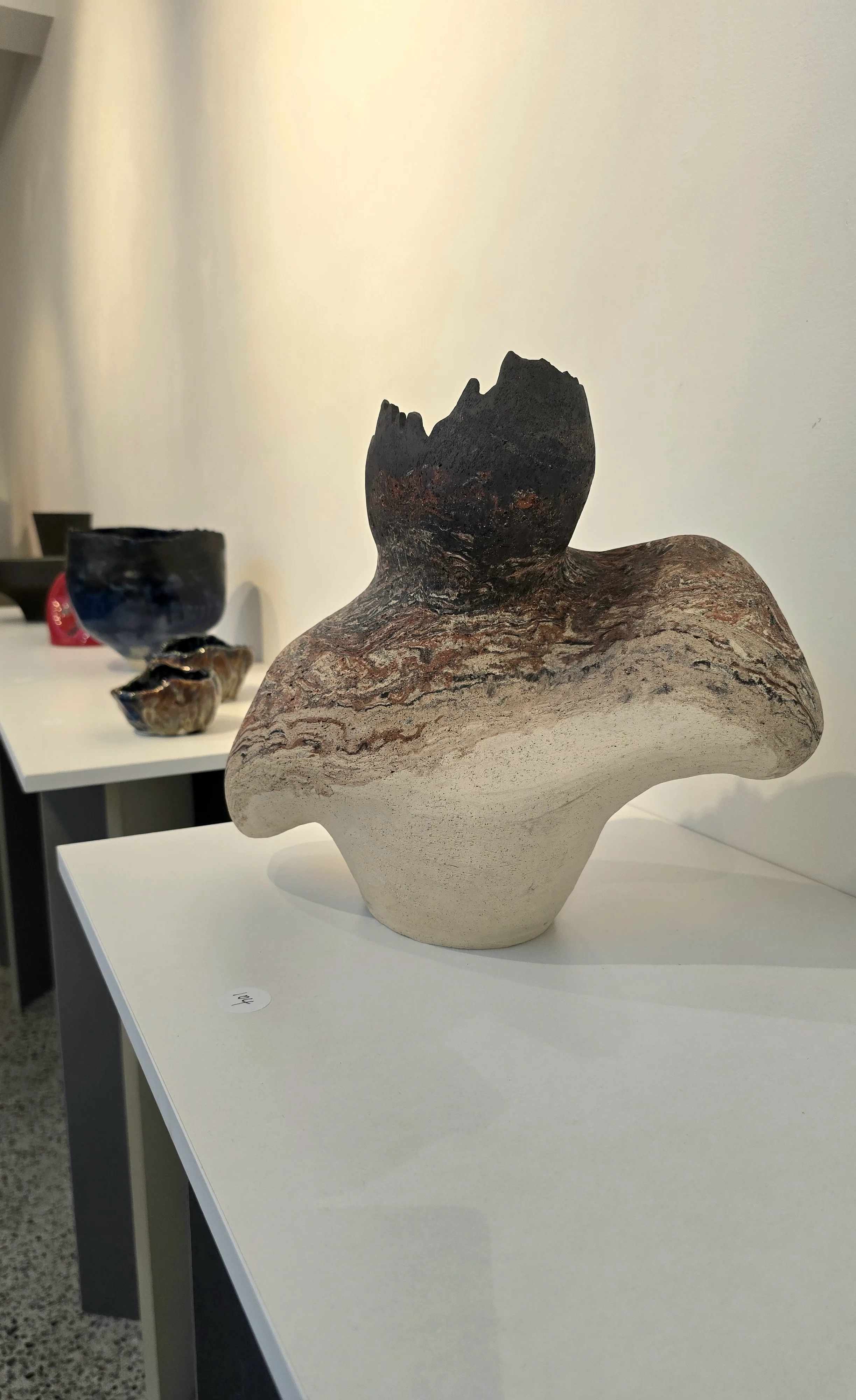 The Arts House Trust, Pah Homestead: Auckland Studio Potters annual judged exhibition. "Emergence" marbled sculptural vessel.