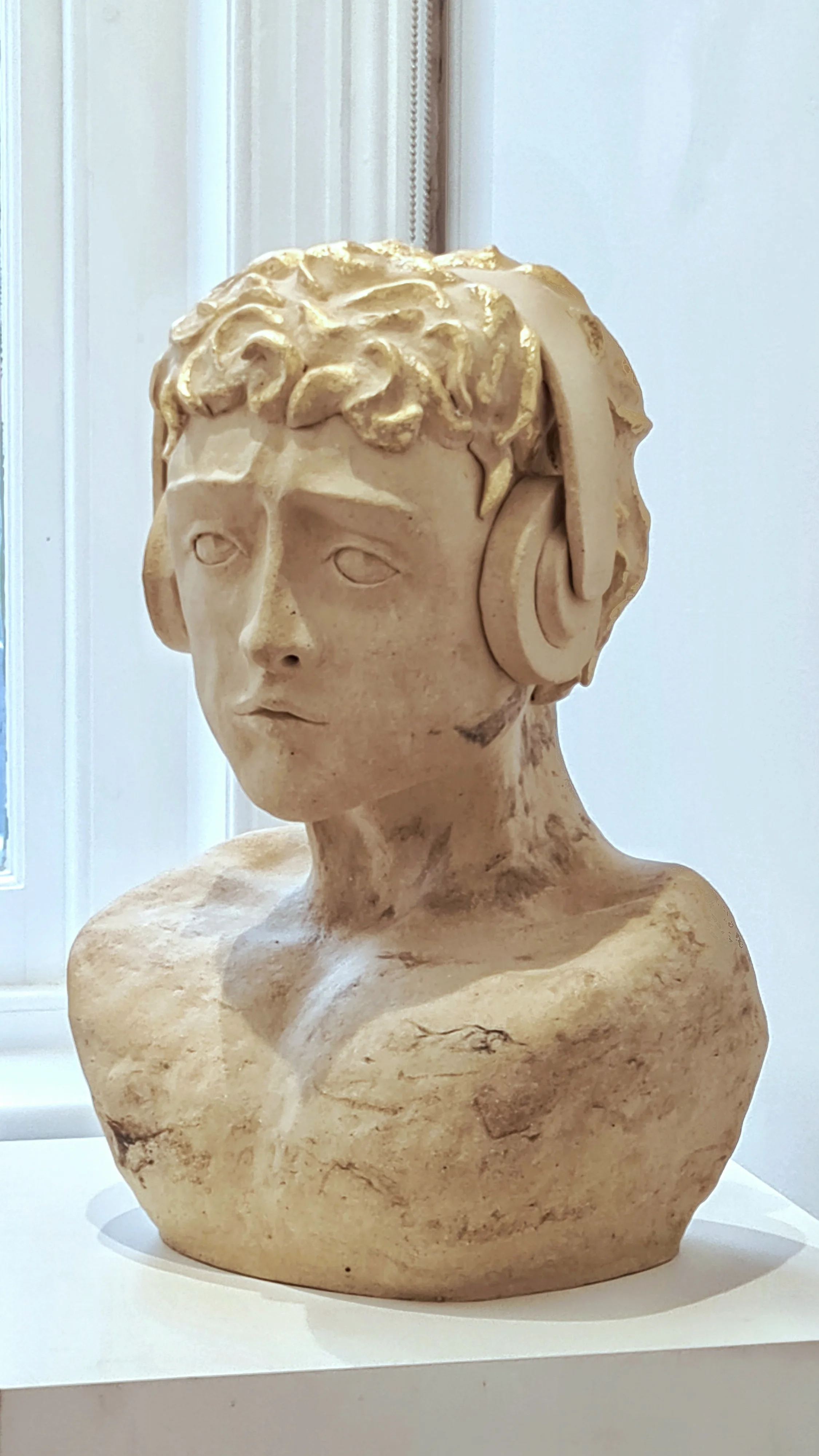 Yvonne Rust Gallery, Whangarei: "Old Deity Head for sale, good condition, no longer worshipped" finalist in Quarry Ceramics Awards